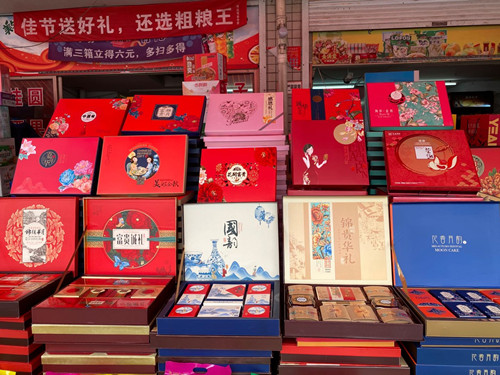 中秋節是中華民族最重要的傳統節日之一,“月餅”是這個節日當仁不讓的主角,承載了人們渴望團聚和美好生活的愿望。在干貨區,月餅幾乎占據了所有店面的醒目位置,散裝、禮盒裝、各種口味應有盡有。