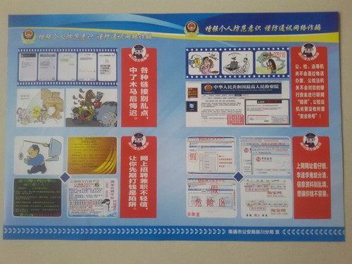 為迎接“雙節”帶來的重大挑戰,安保部全體員工在思想上高度重視、行動上高度自覺、作風上高度嚴謹,積極做好各項準備工作。節前,安保部深入各交易區發放“增強個人防范意識謹防通訊網絡詐騙”和“防范電信網絡詐騙”等警示教育宣傳單,提醒廣大經營戶和客戶加強個人安全防范意識,防止上當受騙。
