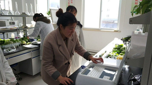 比賽過程中,通農(nóng)物流檢測中心的快檢人員張?jiān)啤㈥惼G容操作流暢、手法熟練、臺(tái)賬記錄清晰明確,整個(gè)流程穩(wěn)中求快。在一小時(shí)中,兩位快檢員使用普贊PZ-NC農(nóng)殘速檢儀各檢測農(nóng)產(chǎn)品66批次 ,并列第一。達(dá)園、智銳達(dá)快檢員使用智銳達(dá)多參數(shù)速檢儀、達(dá)元DY3500速檢儀,各檢測農(nóng)產(chǎn)品30批次。