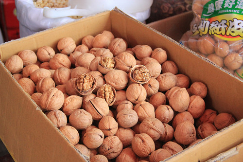 新上市的核桃價格略有下跌。在保興棗業,特級新疆紙皮核桃皮薄果肉滿,去年零售18元/斤,今年只賣15元/斤,價格下跌兩成。而特級新疆若羌棗基本也在15元/斤。攤主王老板解釋說:“現在人們的生活條件好了,越來越懂得養生,種植戶拿準了消費者的這種心理,加大了棗樹、核桃樹種植力度,產量一高,價格自然就降下來了。”