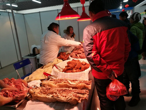 展會(huì)主要分蔬菜、水果、水產(chǎn)、糧油、干貨、熟食六個(gè)區(qū)域,展出的商品除各區(qū)優(yōu)勢(shì)產(chǎn)品,還展出了黃酒、臘肉、香腸等具有春節(jié)特色且能增添過(guò)年氣氛的一些傳統(tǒng)年貨食品。展會(huì)開(kāi)幕不久,通農(nóng)小廚參展的熟食展位就被采購(gòu)的人群圍住,產(chǎn)品銷售火熱。另外,保健品、茶葉、糖酒類產(chǎn)品也有眾多商品參與此次展會(huì)。