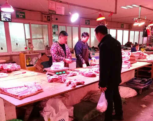近期買菜的市民可能會(huì)發(fā)現(xiàn),豬肉比年前便宜不少,原本12元/斤左右的豬肉現(xiàn)在已跌破9元大關(guān),跌幅近三成。在通農(nóng)物流豬肉區(qū),每個(gè)分割肉攤位上都擺放著新鮮的豬肉和排骨,有市民正在選購(gòu)。經(jīng)營(yíng)戶董老板介紹到:現(xiàn)在豬肉行情不好,很多市民過年大魚大肉吃的還沒有緩過勁兒來,豬肉供應(yīng)充足,但消費(fèi)終端需求不旺,導(dǎo)致年后豬肉價(jià)格直線跳水。本周腿肉、夾心肉8-9元/斤,五花肉10元/斤,仔排20元/斤,豬腳12元/斤,夾心、腿肉、豬腳比年前便宜了3元/斤,五花肉、仔排比年前便宜了4元/斤,雖然肉價(jià)下來了,但前來購(gòu)買的市民還是不多。