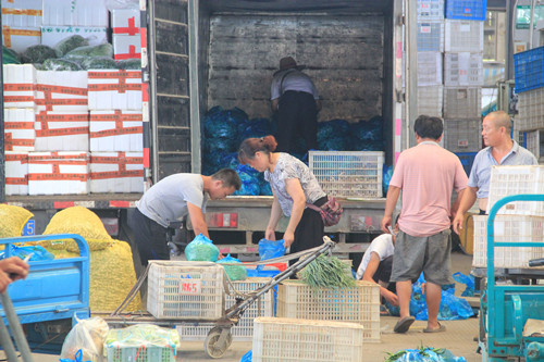 “每天有近900車左右的蔬菜運抵,其中客菜占據(jù)蔬菜總供應量60%以上。浙江冬瓜批發(fā)每斤0.3元,山東洋蔥每斤也不過0.6元。”昨天上午,通農物流蔬菜交易區(qū)里一片忙碌,相關負責人介紹,監(jiān)測數(shù)據(jù)顯示,本周蔬菜供應量達9700噸左右,蔬菜價格整體平穩(wěn),環(huán)比上周下跌2.8%,但較去年同期上浮5.65%。目前海安東臺、內蒙土豆、本地西紅柿、壽光雜貨、蘭州雜貨、毛豆、洋蔥、海門雜貨等蔬菜銷量靠前,價格在0.3-1.9元/斤不等。