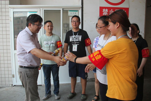 7月20日起,通農(nóng)物流總經(jīng)理室、工會領導每天分批到交易區(qū)慰問一線員工,公司食堂每日提供免費綠豆湯供職工消暑降溫。(黨群辦 施婧婧)