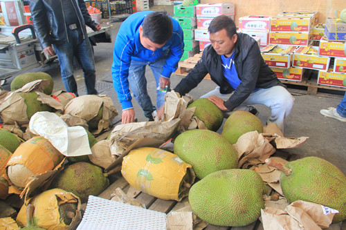 精品水果爭先熱賣,品種豐富。以批發(fā)價為例:四川凱特芒8.5元/斤、泰國青芒5.5元/斤;新西蘭獼猴桃3.8-4.6元/斤;泰國、海南菠蘿蜜紅肉11元/斤、黃肉7元/斤;泰國金枕榴蓮20元/斤;山東桃子6.5元/斤;愛媛果凍橙65元/箱。采訪中,記者注意到,直發(fā)區(qū)甘蔗也較受歡迎,每斤約1元不到,進貨商大多成捆購買。