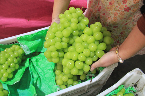 “本地陽光玫瑰葡萄還有半個多月就要下市,現(xiàn)在每日銷量仍然可觀”。在永升果業(yè)攤位前,記者看到七八位工作人員正在嫻熟地分揀包裝。“老板,給我六串”----“老板,給我來一箱”---購買市民絡繹不絕。陽光玫瑰葡萄口感獨特,甜中透著淡淡的玫瑰清香。在市區(qū)水果店零售每斤20多元,但這里按批發(fā)價格每斤僅15元。