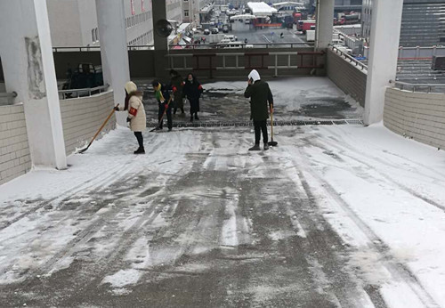 12月31日,全體現場員工一起出動清理片區內道路積雪。清雪期間干貨區員工擔當掃雪主力,無一人有怨言,因為我們心里明白,我們的工作宗旨就是“為經營戶服務”。(干貨部 管文娟)