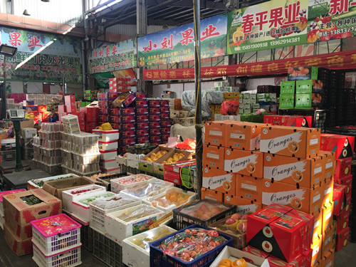 在水果交易區(qū),蘋(píng)果、橙子、柚子、獼猴桃、芒果、車(chē)?yán)遄拥鹊纫彩嵌训脻M(mǎn)滿(mǎn)當(dāng)當(dāng)。通農(nóng)物流擁有兩座四萬(wàn)噸冷庫(kù),水果倉(cāng)儲(chǔ)充足,并能滿(mǎn)足高質(zhì)量的保鮮要求。