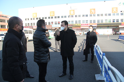 1月29日上午,黨總支書(shū)記、總經(jīng)理徐徑和副總經(jīng)理姜浩檢查市場(chǎng),督促經(jīng)營(yíng)戶(hù)佩戴口罩,注意自我防護(hù)。