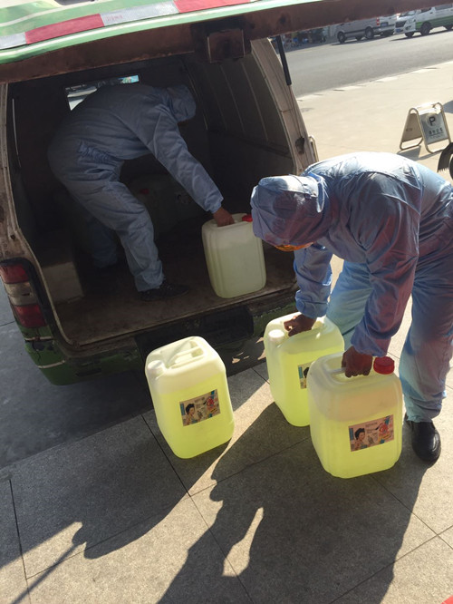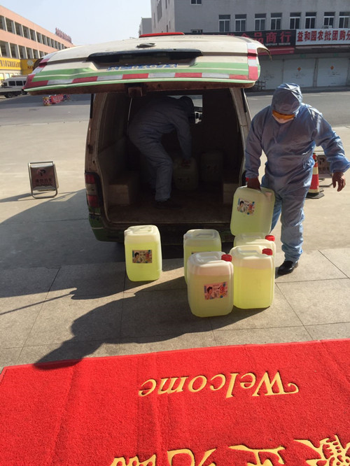 為做好疫情防控,顧及全員上下安全,2月1日承包人統一為大家購買防疫服。2月4日配送中心積極向公司贈送10桶84消毒液,為奮戰在一線的工作人員提供了有利的物資保障。