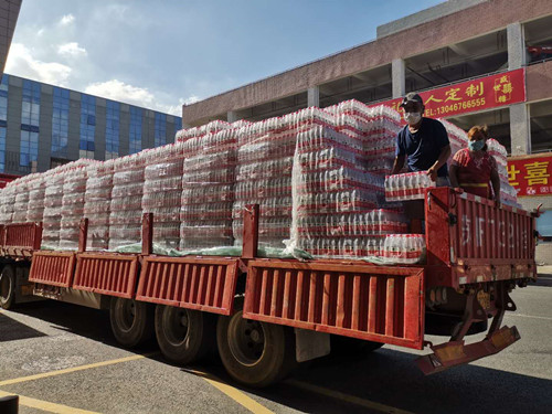 在干貨七號大廳西,王勇炒貨、海航食品、赟鑫休閑食品,這些主營水和飲料的大戶,從老板到小工,每個人都異常忙碌,各種進貨車輛都在排隊等候裝車。據王勇炒貨王老板介紹,今年各種品牌水和飲料制品的價格和往年相比,基本沒有變化,農夫山泉、怡寶、康師傅等這些價格親民的大眾化品牌依然是銷售主力。隨著市民的健康意識增強,功能性飲料、含糖飲料的銷量占比有所下降。