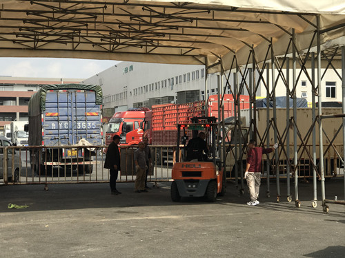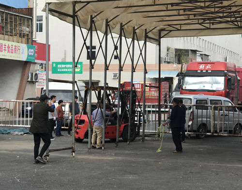 10月26日由水果交易區經理帶頭,部分工作人員、經營戶組隊,集中到驗車區,移動大棚,大家帶著手套,喊著號子,發揮不怕苦、不怕累的精神,齊心協力,將四個大棚全部移動完畢。