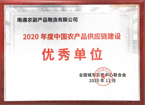 為加強農(nóng)產(chǎn)品流通各環(huán)節(jié)的協(xié)同創(chuàng)新,推動疫情防控常態(tài)下中國農(nóng)產(chǎn)品供應鏈智慧化建設(shè)發(fā)展,宣揚和弘揚為中國農(nóng)產(chǎn)品供應鏈發(fā)展做出突出貢獻的單位和個人,2020年11月,在全國城市農(nóng)貿(mào)中心聯(lián)合會舉辦的“2020年度中國農(nóng)產(chǎn)品供應鏈之星”表彰活動中,南通農(nóng)副產(chǎn)品物流有限公司榮獲“2020年度中國農(nóng)產(chǎn)品供應鏈建設(shè)優(yōu)秀單位”。 (經(jīng)營部 洪聰慧)