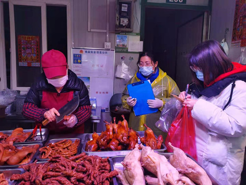 根據(jù)公司相關(guān)要求,春節(jié)前期水產(chǎn)交易區(qū)將對(duì)重點(diǎn)品種(熟食、魚(yú)、蝦)加大抽檢力度、增加抽檢頻率,確保水產(chǎn)(肉類(lèi))食品銷(xiāo)售安全。1月27日,水產(chǎn)區(qū)食品安全員和現(xiàn)場(chǎng)管理人陪同食安部檢測(cè)人員對(duì)熟食區(qū)進(jìn)行全面抽檢,針對(duì)熟食區(qū)牛雜、牛腸、牛肚、牛頭肉、豬頭肉這五種亞硝酸鹽容易超標(biāo)的重點(diǎn)品種進(jìn)行每戶(hù)必抽,其他熟食制品隨機(jī)抽檢,增加品種和頻率,確保熟食抽檢無(wú)死角全覆蓋。