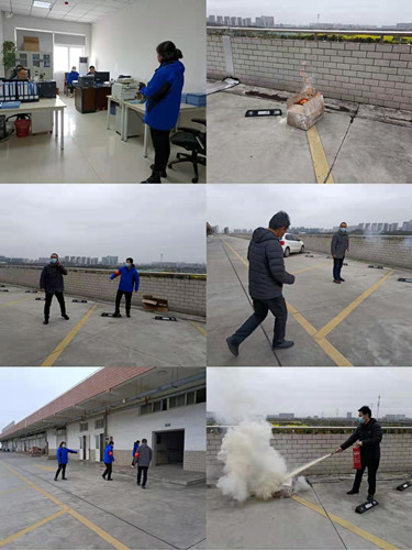 消防演練前,邢經理對大家講解了演練的主要目的及演練過程。隨后全體人員根據消防應急預案進行實地演練:1、工作人員巡查過程中發現紙箱發生自燃;2、立即打電話向領導匯報;3、領導接到電話組織人員開展滅火行動;4、工作人員尋找干粉滅火器;5、工作人員拿到干粉滅火器奔赴現場進行火災撲滅;6、立即疏散人群,清理現場,應急演練結束。