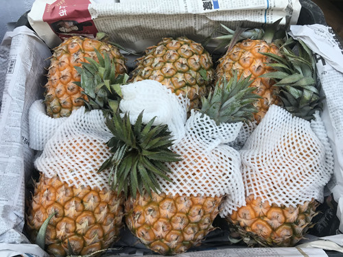現在也到了菠蘿上市的季節。在水果交易區里,前來采購菠蘿的進貨商絡繹不絕,其價格在2-3元/斤。據了解,目前市場上銷售的菠蘿主要來自海南,菠蘿肉色金黃、香味濃郁、酸甜可口、清脆多汁,享有著名的熱帶水果之稱的美譽。