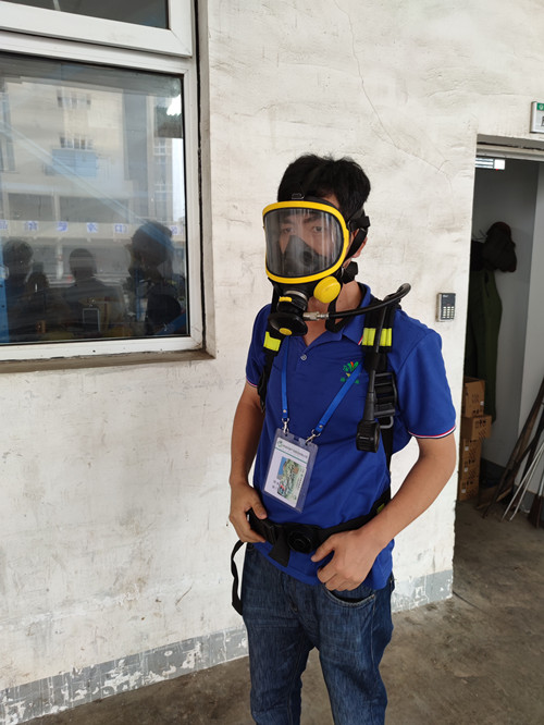 培訓內容為正壓式空氣呼吸器(SCBA)的技術性能,使用前的檢查、正確佩戴方法、檢查氧氣鋼瓶內氣壓、空氣呼吸器的脫卸等。