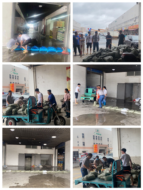 25日下午,在副經理顧志勇的帶領下,干貨區全體在崗人員充分發揮了不怕苦不怕累的精神,男的用肩扛,女的用手抬,經過1個多小時的努力,在糧油多個主通道內堆放了防汛沙袋,有效的確保了區域內的安全。完成了一系列的防范措施后,顧經理又叮囑各片區人員從以下幾個方面持續排查:1、提醒商戶將貨物全部堆放在托盤上,謹防貨物受損;2、對現場的用電情況進行再排查,要求商戶休市后全部斷電,防止掉線破皮短路,引發安全事故;3、告知商戶關緊門窗,檢查門窗是否堅固,電器線路是否安全,同時提醒商戶將店前雨棚提前收好;4、夜間值班人員加強場內巡查頻次;5、提醒商戶及員工做好自身安全防護工作。(干貨區 吳珍鳳)