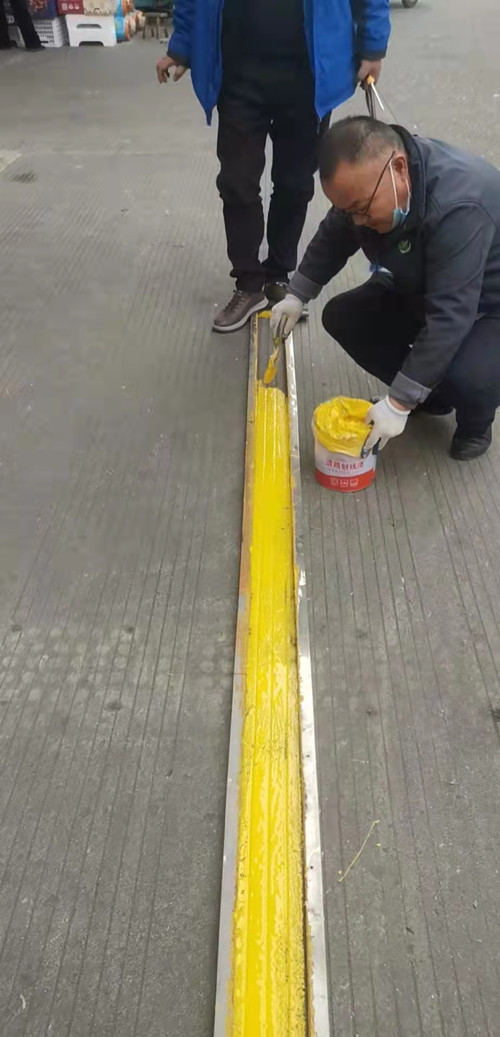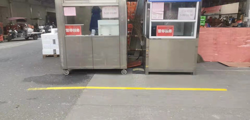 行動中,首先對市場內不文明養寵物以及外圍流浪狗亂竄亂跑的現象,進行了徹底的整治,另外經理范一凡強調,外來采購人員一律不允許攜帶寵物進場。隨后見習主管陳躍華組織人員,對主要入口地面設置了“一米線”的提示標識,引導市民文明有序購買。最后,水果區管理人員分頭開展全方位檢查,確保大棚大廳及外圍環境衛生、消防安全、禁煙標識和從業人員健康證等方面符合創文標準。