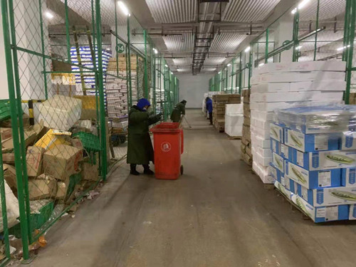 清理現(xiàn)場(chǎng)主要分為普通庫(kù)區(qū)和冷鏈專庫(kù)兩個(gè)地方,參加打掃的員工分工明確,齊心協(xié)力,全面清理了庫(kù)區(qū)內(nèi)的垃圾及一些衛(wèi)生死角。打掃零下18度的低溫庫(kù)區(qū),大家不僅要頂著嚴(yán)寒,還要穿著厚重的棉衣去鑿冰,整理,再清掃,最后把垃圾倒入垃圾桶清理出庫(kù),雖然是零下18度的低溫,但是大家干得熱火朝天。在大家的共同努力下,庫(kù)區(qū)變得干凈、整潔。