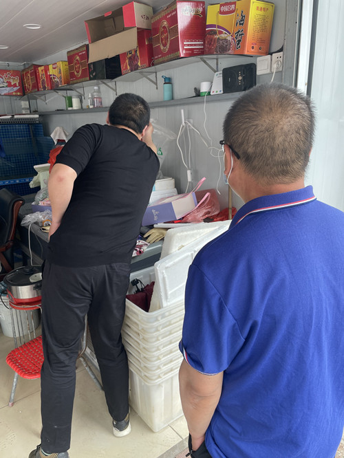 目前疫情防控仍然是工作重心,但是日常各項安全工作仍然不能放松。5月19日下午,水產肉類交易區經理室布置,主管范淵牽頭,帶領安全管理員李祥、見習辦事員葛曙光、班組長章偉、陳旭鵬進行了一次安全大檢查,針對交易區所有大廳店面房、大棚攤位、自搭建攤位的消防安全、用電安全、食品安全,仔細排查,一旦發現隱患能整改的立即整改,不能整改的限期整改。
