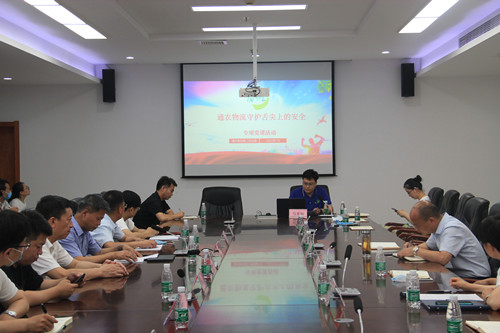 隨后,通農(nóng)物流第二黨支部書記呂劍同志從通農(nóng)物流高度重視食品安全問題,疫情期間勇承擔(dān)、力保食品安全可靠,疫情防控常態(tài)化期間推進(jìn)多項食品專項活動,扎實落實食品安全日常管理工作,不忘初心、牢記使命,守護(hù)舌尖上的安全幾個方面交流了“舌尖上的安全”黨建品牌建設(shè)情況。