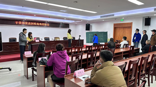 11月22日上午,干貨部在展銷樓四樓會議室開展了廢品回收場地招標(biāo)會。招標(biāo)會共分為兩個標(biāo)的,一標(biāo)的是廢品回收南場地,二標(biāo)的是廢品回收北場地,共11家投標(biāo)單位參與競標(biāo),經(jīng)理叢俊杰、副經(jīng)理顧志勇及相關(guān)工作人員參與了此次招標(biāo)會。