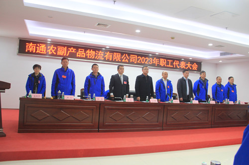 在莊嚴的《國歌》聲中,通農物流2023年職工代表大會圓滿落幕。(綜合部 施光楠)