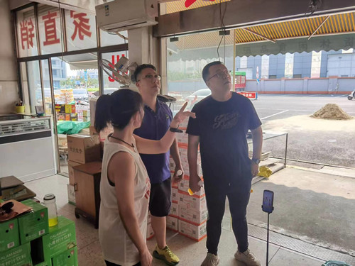 今年是通農(nóng)物流“服務(wù)提升年”,為切實優(yōu)化交易區(qū)服務(wù)管理,7月25日,干貨配送區(qū)副經(jīng)理胡建博帶隊對經(jīng)營戶進行挨家挨戶走訪,詢問商戶有無實際困難,在生產(chǎn)經(jīng)營方面需要提供哪些幫助。