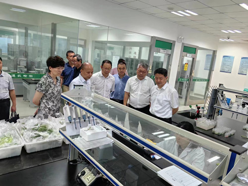 考評組實地考察了通農物流蔬菜交易區和農產品檢驗檢測中心。在通農物流檢驗檢測中心觀看了通農物流的宣傳片,查看了農產品檢驗檢測工作情況,并重點詢問了市場農產品溯源系統的推進情況、農產品檢驗檢測合格率及不合格處置情況。通農物流黨總支書記、董事長闞君成向考評組介紹了通農物流目前的運營情況,并就食品安全及“菜籃子”產品供給、流通、調控等方面工作進行了深入交流。