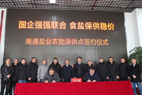3月6日上午,南通鹽業通農物流保供點簽約儀式在通農物流展銷樓一樓舉行,江蘇省鹽業集團南通有限公司與南通通農農副產品配送有限公司正式簽署食鹽配送協議。崇川區委常委、崇川經濟開發區黨工委書記閆靜翔、崇川區市場監督管理局崇川經濟開發區分局黨支部書記、局長周兵,江蘇省鹽業集團南通鹽業有限公司黨委書記、董事長、總經理許文軍,南通汽運實業集團有限公司黨委委員、南通農副產品物流有限公司總經理孟宏等相關領導共同出席簽約儀式,并參觀了南通鹽業通農物流保供點現場。