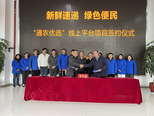 3月6日上午,“通農優選”線上平臺與南通甜璽辰貿易發展有限公司正式簽約。通農物流黨總支副書記、總經理孟宏與南通甜璽辰貿易發展有限公司代表單建峰簽署“團購協議書”,就南通市內社區團購達成合作。