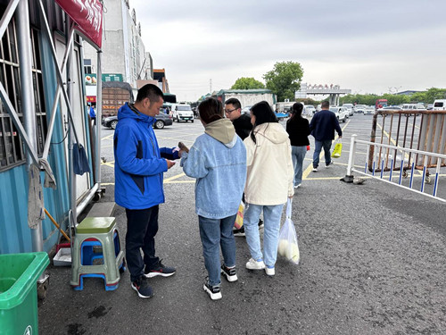 五一假期是水果區交易的旺季,工作量也隨即增加,水果區門崗驗票員管棟梁、范楊、蔣偉偉等人認真仔細核驗每一張票據,杜絕逃費漏費,做到出門有票,票貨一致;同時還要負責出入口的安全秩序、道路交通安全及驗票區域(含崗亭)安全和環境衛生。責任區管理員管維維、張潔麗等人對交易區內大棚和大廳的安全秩序、環境衛生等問題也不敢懈怠。她們認真檢查并排除安全隱患:1.有無明火,煙頭不落地;2.私拉亂接,線路破損裸露,使用大功率電器的;3.遮擋消防設施設備,及設備器材外觀破損,做好每月點檢臺賬記錄;4.檢查經營戶自建冷庫旁是否長期堆放易燃物品,用電線路是否老化、壓縮機等是否正常工作;5.貨物“不落地”擺放;6.無預包裝食品;7.無誤導性包裝食品;8.亮證經營、進銷臺賬、溯源登錄、冷庫冷柜溫度登記等。