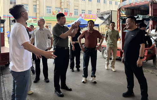 在通農物流副總經理、蔬菜交易區經理范一凡的帶領下,張董一行實地走訪了通農物流蔬菜交易區和檢驗檢測中心,了解蔬菜區運營模式,并現場觀摩了農產品檢測流程。